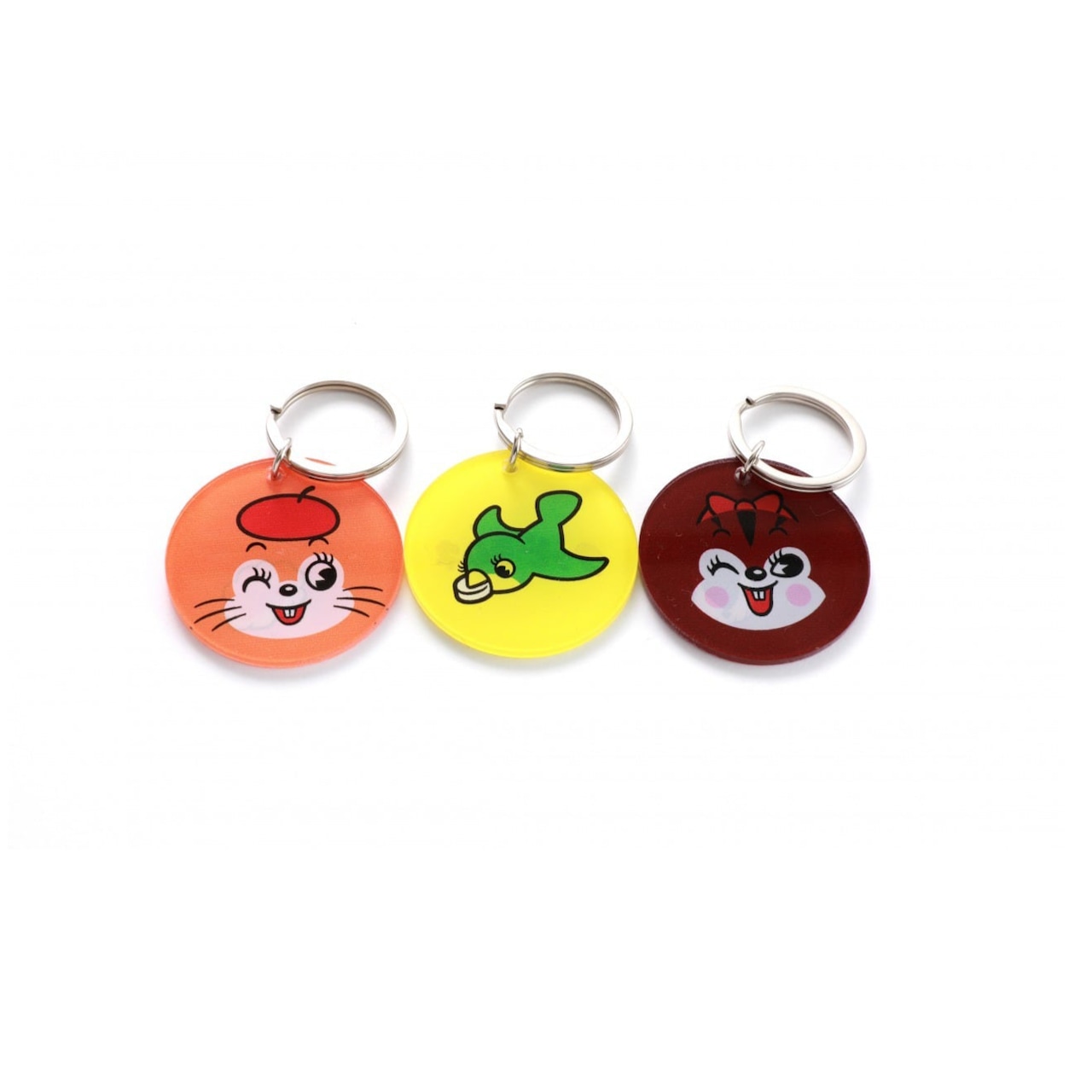 それぞれのキャラクターをプリントした円形キーホルダーです。